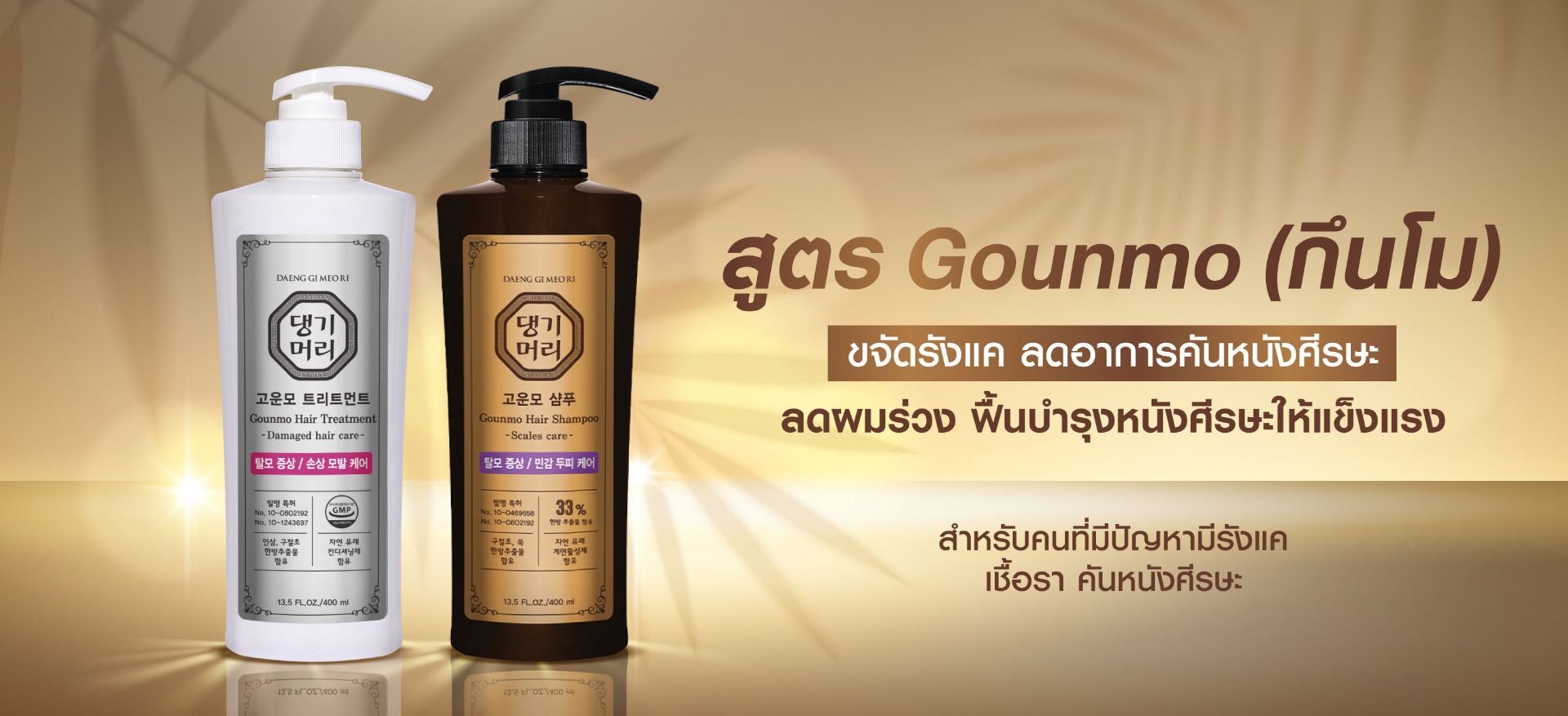 แทงกีโมรี กึนโมเซ็ตแชมพูคู่ทรีตเมนต์ลดผมขาดหลุดร่วง ลดรังแค ลดอาการคันศีรษะ 400มล. Find out more