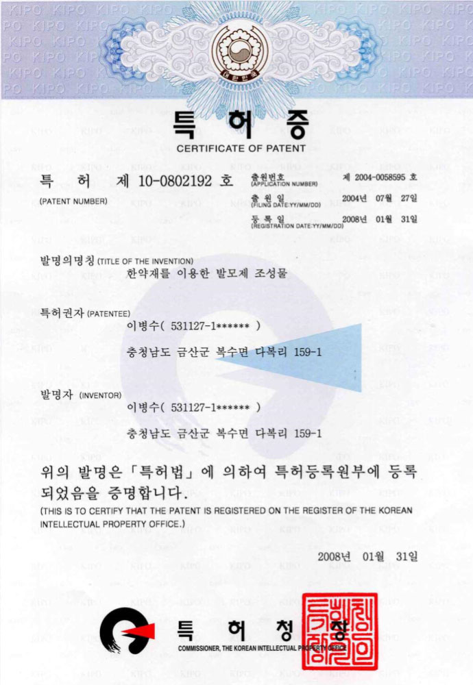 ผ่านการคิดค้นและวิจัยผลิตภัณฑ์มากว่า 12 ปี โดยมีการพัฒนาสูตรสมุนไพรจากตำรา ทงอึยโบกัม (Donguibogam) หนังสือแพทย์หลวงสมัยโชซอน ในส่วนของตัวสมุนไพรเองก็ได้มีการคัดสรรอย่างพิถีพิถัน และปลูกในพื้นที่ควบคุมคุณภาพโดยเฉพาะ และได้การรับรองด้านคุณภาพและการทดสอบ