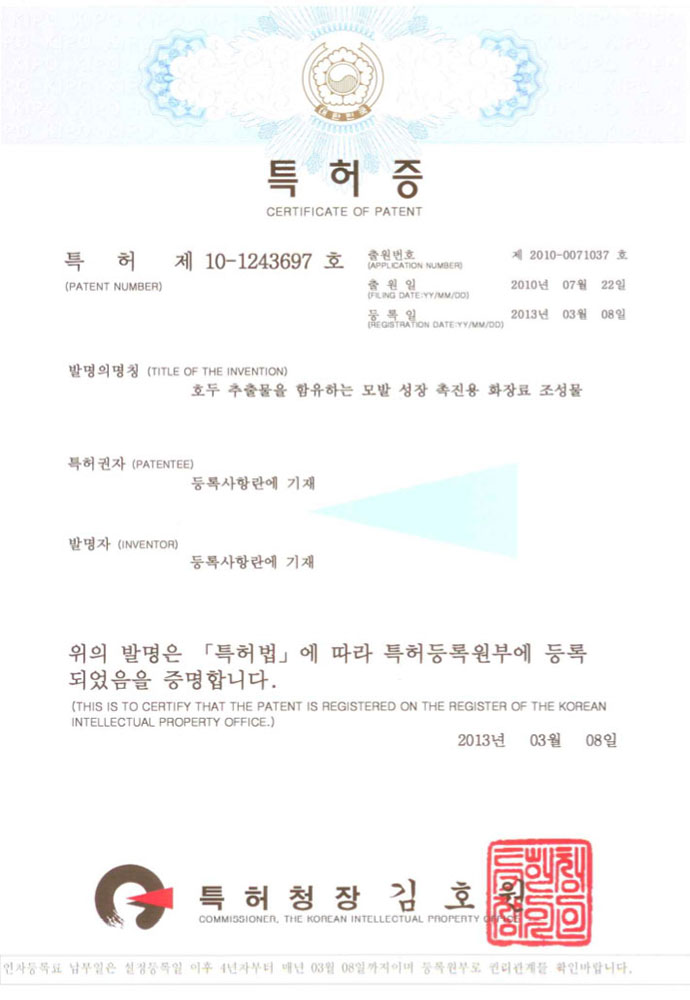 ได้รับรางวัลต่อเนื่องมาเป็นปีที่ 10 สำหรับสินค้าขายดีประเภทผลิตภัณฑ์ดูแลผมร่วง การันตีรางวัลที่ดีที่สุดจากประเทศเกาหลี