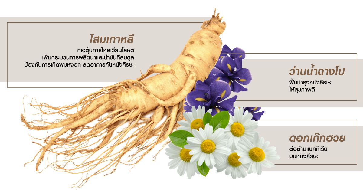 - Ginseng + Siberian Chrysanthemum Extract ช่วยกระตุ้นการเกิดใหม่ของเส้นผม พร้อมบำรุงหนังศีรษะ